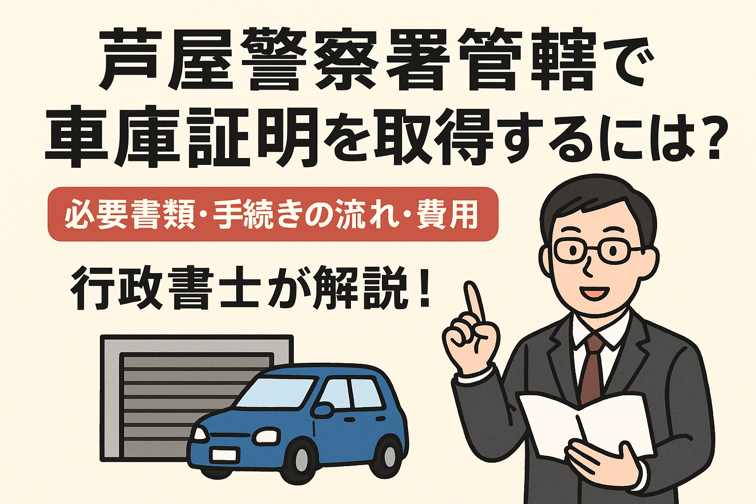 この記事では、行政書士が「芦屋警察署での車庫証明取得手続き」について、必要書類や申請の流れ、スムーズに進めるためのコツをわかりやすく解説します。これから申請を検討されている方や、業務を効率化したい法人様は、ぜひ参考にしてください。