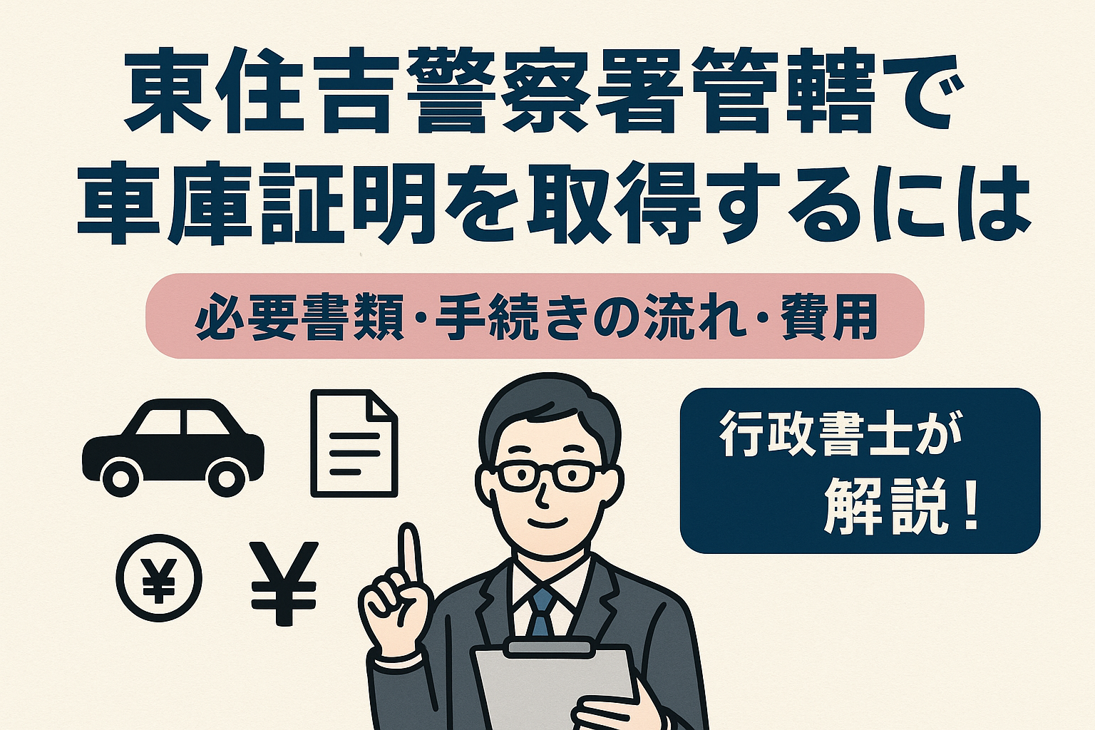 この記事では、行政書士が「東住吉警察署での車庫証明取得手続き」について、必要書類や申請の流れ、スムーズに進めるためのコツをわかりやすく解説します。これから申請を検討されている方や、業務を効率化したい法人様は、ぜひ参考にしてください。
