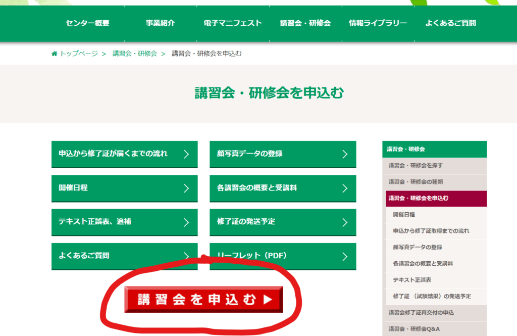 当事務所では、許可申請の委任業務に講習会申込のサポートも含めておりますので、