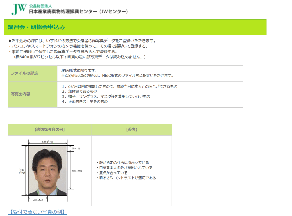 【補足】申込時の顔写真にはサイズの指定等がありますので、ご注意ください。