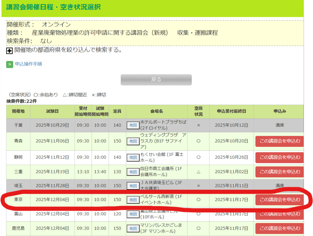弊所へのご相談でも許可を取得したいが、講習会の空きがなくて取れないといったお声を
