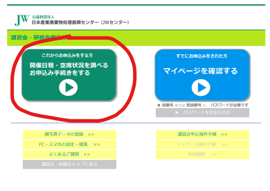 受講申し込みは、JWセンターの専用サイトからオンラインで行います。